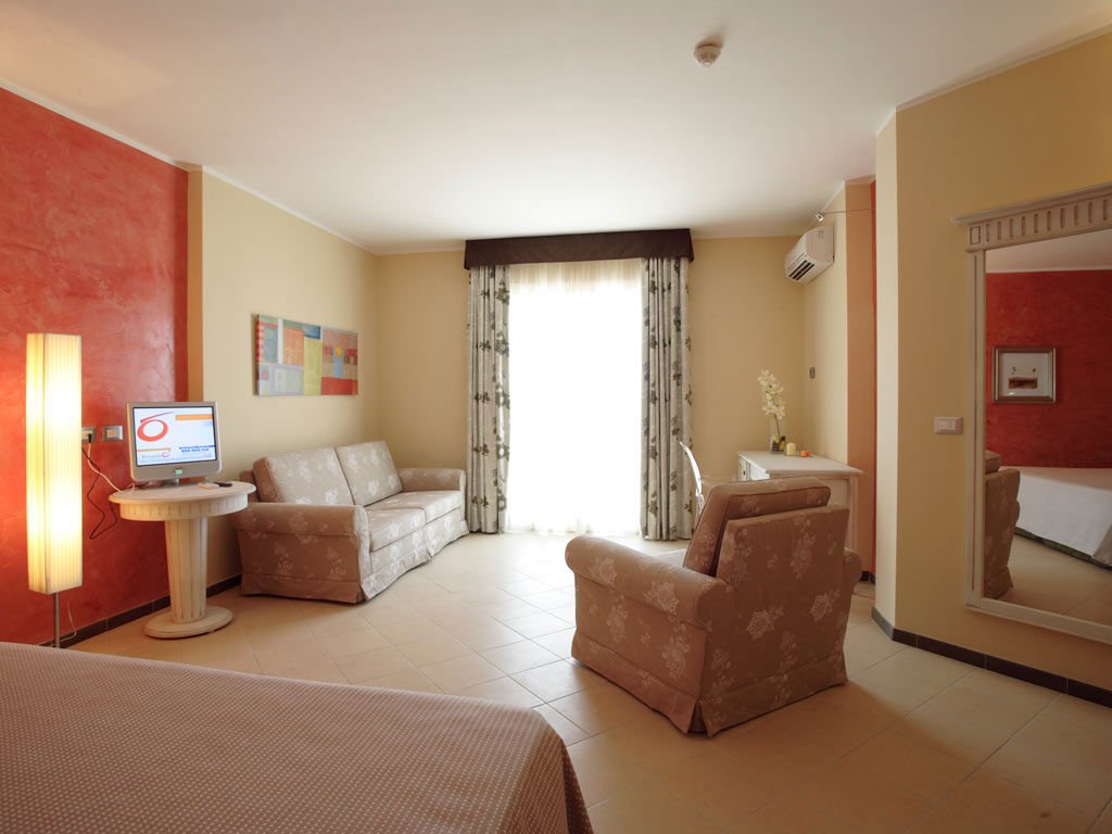 Junior Suite szoba: Tágas szoba, erkéllyel vagy terasszal ellátva. TV, légkondicionáló, fürdőszoba (zuhanyzó, hajszárító), minbár/hűtő, széf, wifi.